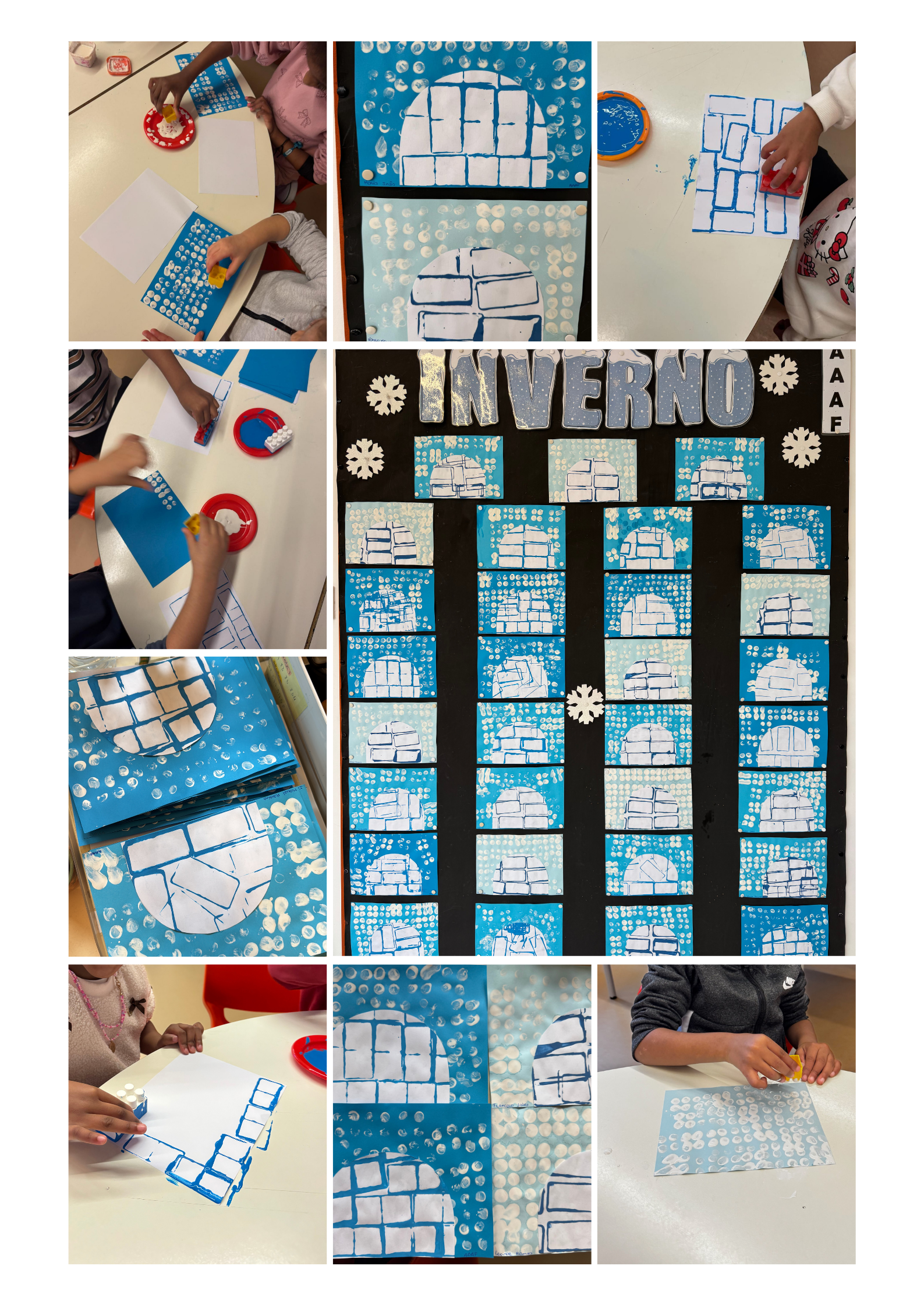 No âmbito do tema Inverno, os nossos pequenos artistas divertiram-se a construir iglus através da carimbagem com peças de lego. Com muita curiosidade e imaginação, exploraram formas e padrões, dando vida a iglus cheios de cor e criatividade. Entre brincadeiras e descobertas, esta atividade ajudou a desenvolver a motricidade, a atenção e o gosto por aprender de forma divertida. 🥰