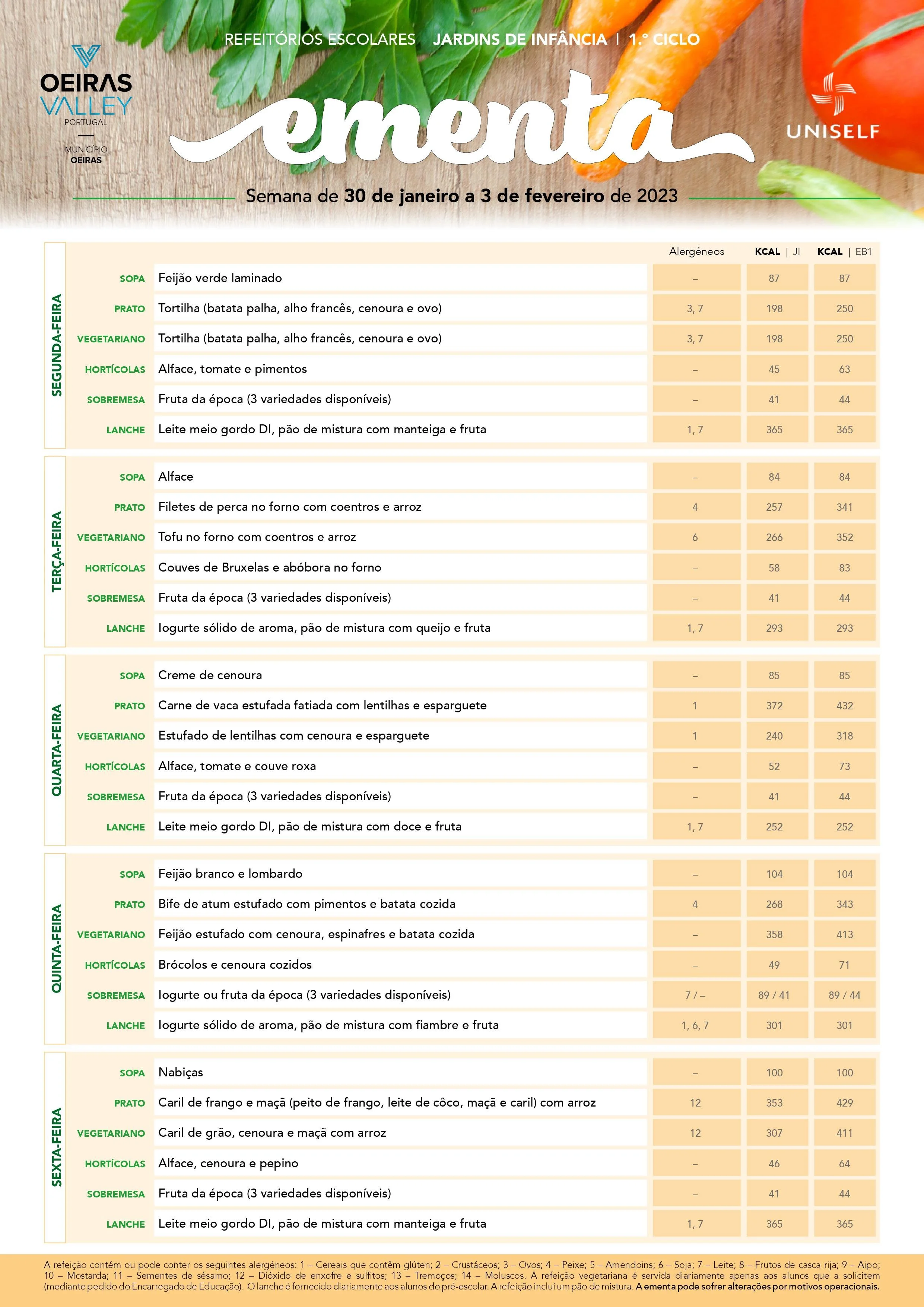 Ementa da semana 30/01 Escrito por Rute Pires 5ª semana - de 30 de janeiro a 3 de fevereiro Rute Pires