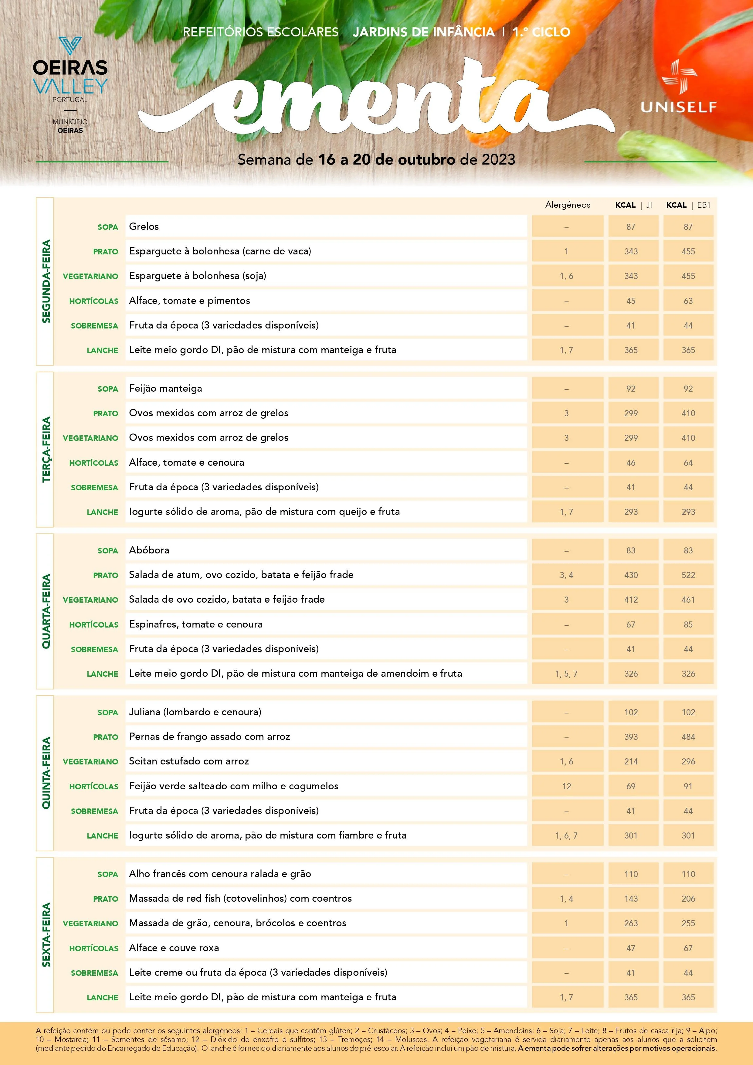Ementa da semana 16/10 Escrito por Rita Lopes | APGFA 3ª semana- de 16 a 20 de outubro Rita Lopes | APGFA