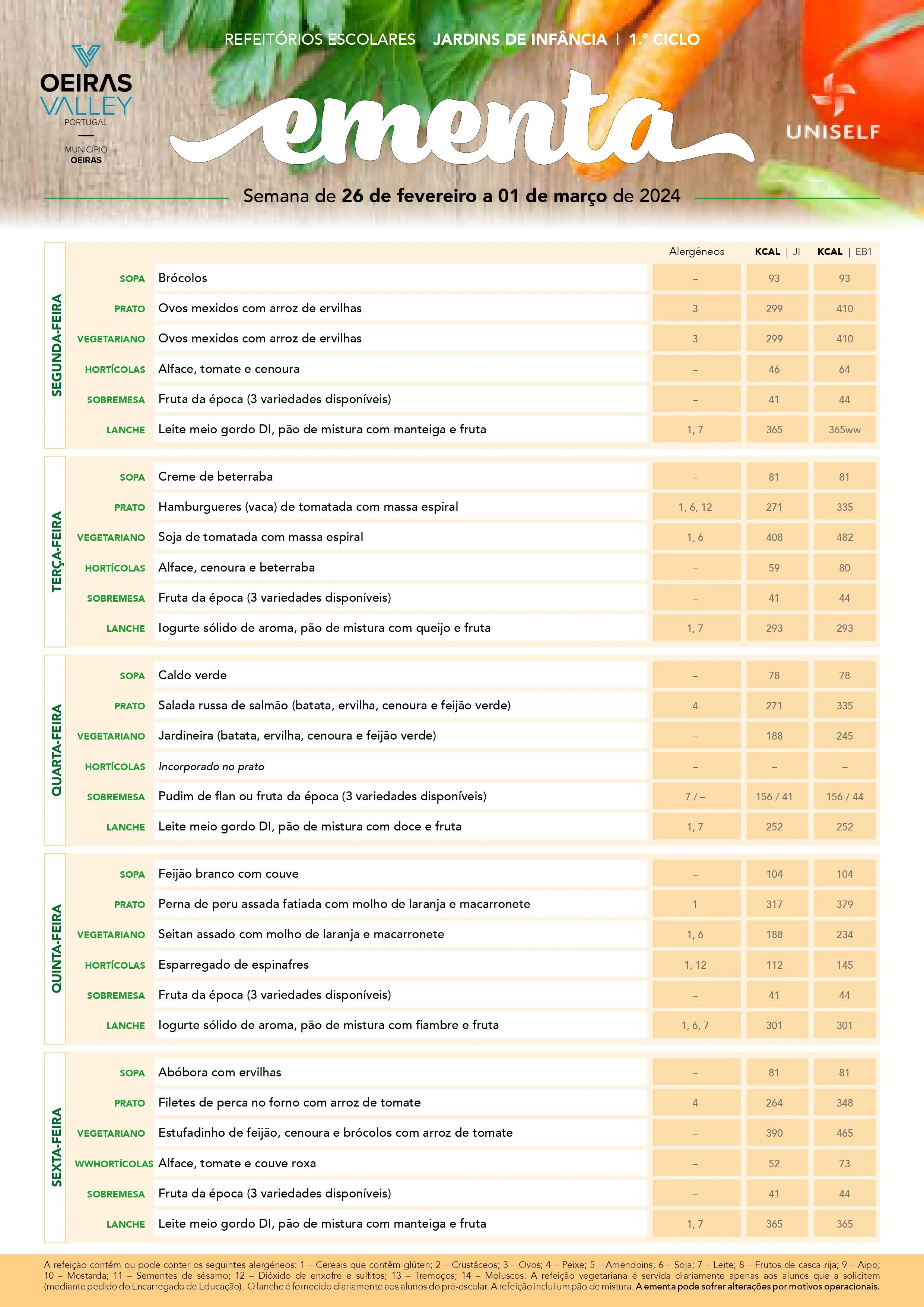 Ementa da semana 26/02 Escrito por Rita Lopes | APGFA 4ª semana- de 26 fevereiro a 1 março Rita Lopes | APGFA