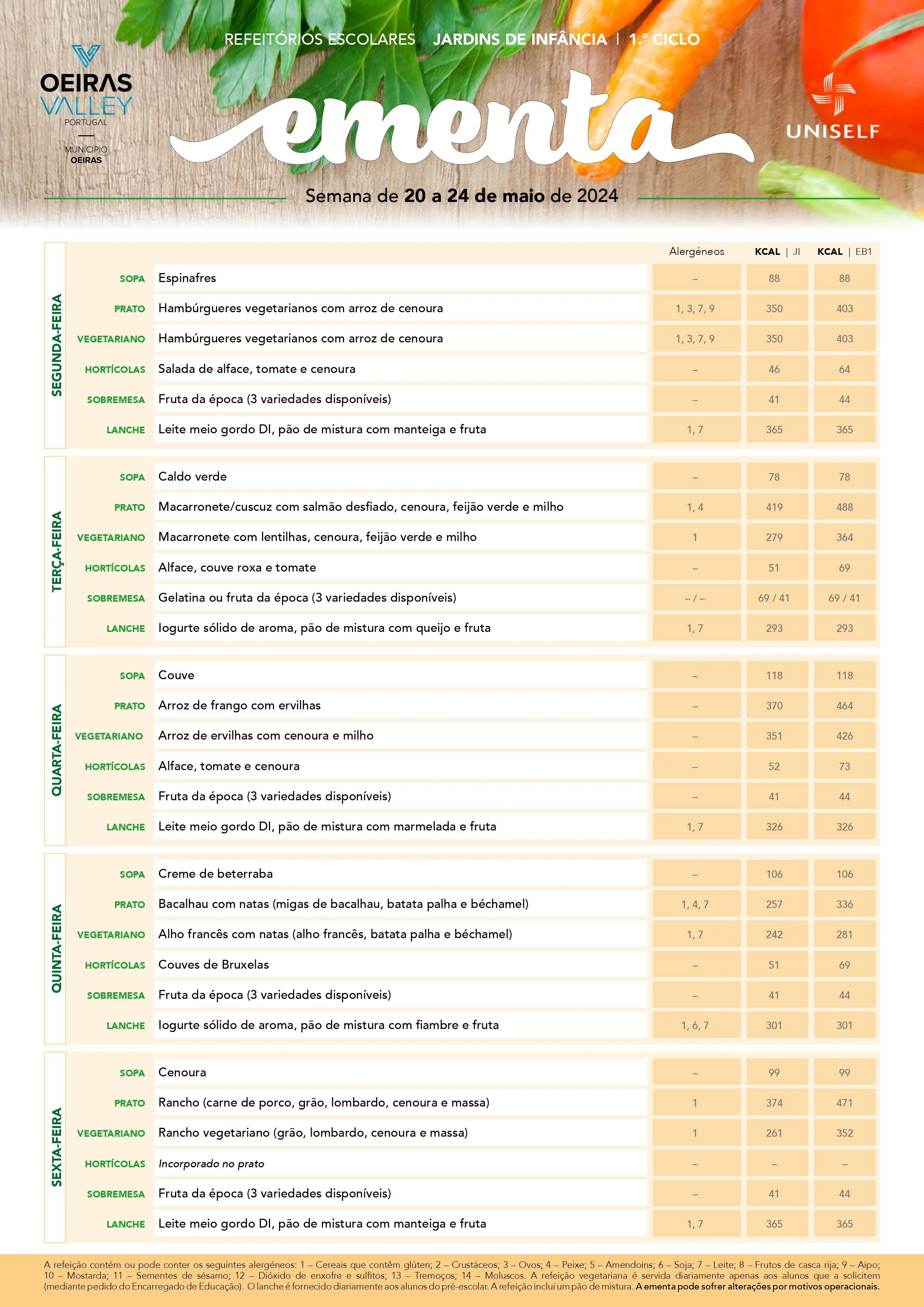 Ementa da semana 20/05 Escrito por Rita Lopes | APGFA 3ª semana- de 20 a 24 de maio Rita Lopes | APGFA