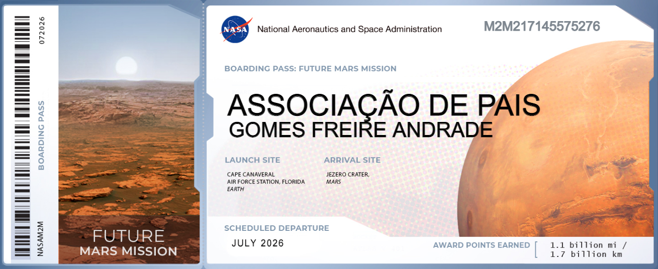Claro que apenas o nome da Associação de Pais da Gomes Freire de Andrade ficará registado na superficie desse planeta, mas é sempre bom fazer parte destes projetos da NASA, que nos vai sempre mantendo a par do que está a acontecer se deixarmos o nosso email.