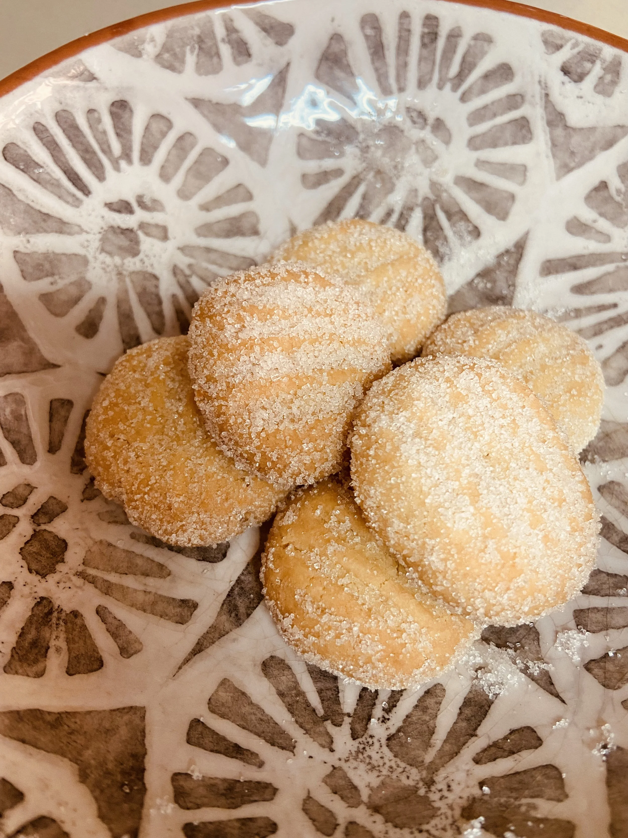 6. Coloque numa tigela açucar e passe cada bolinho pelo mesmo, ainda quente. Vão ter ainda uma consistência mole, mas que passará a ser firme quando arrefecerem.